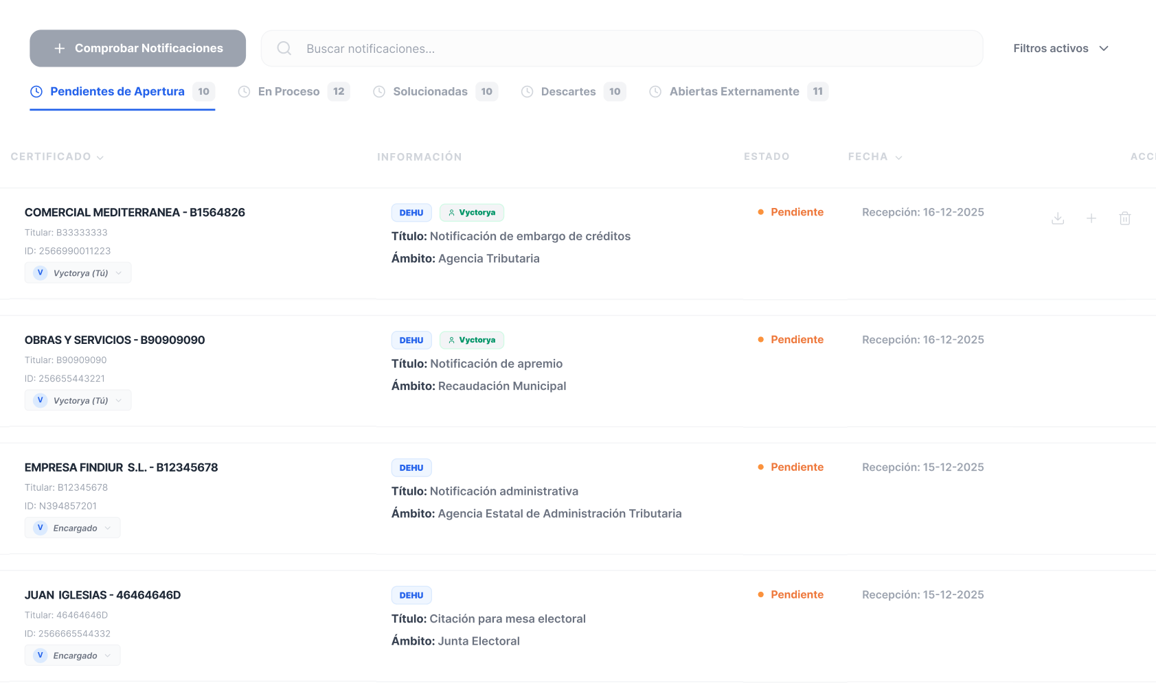 Ahorra 4 horas a la semana con toda tu operativa centralizada. Notificaciones descargadas, clasificadas y listas para informar al cliente.