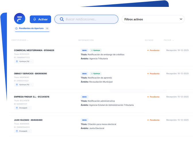 Porque gestionar notificaciones no debería ocupar tu cabeza ni tu agenda. Centraliza y automatiza las notificaciones de 13.000 sedes en un solo lugar, plazos controlados y clientes avisados