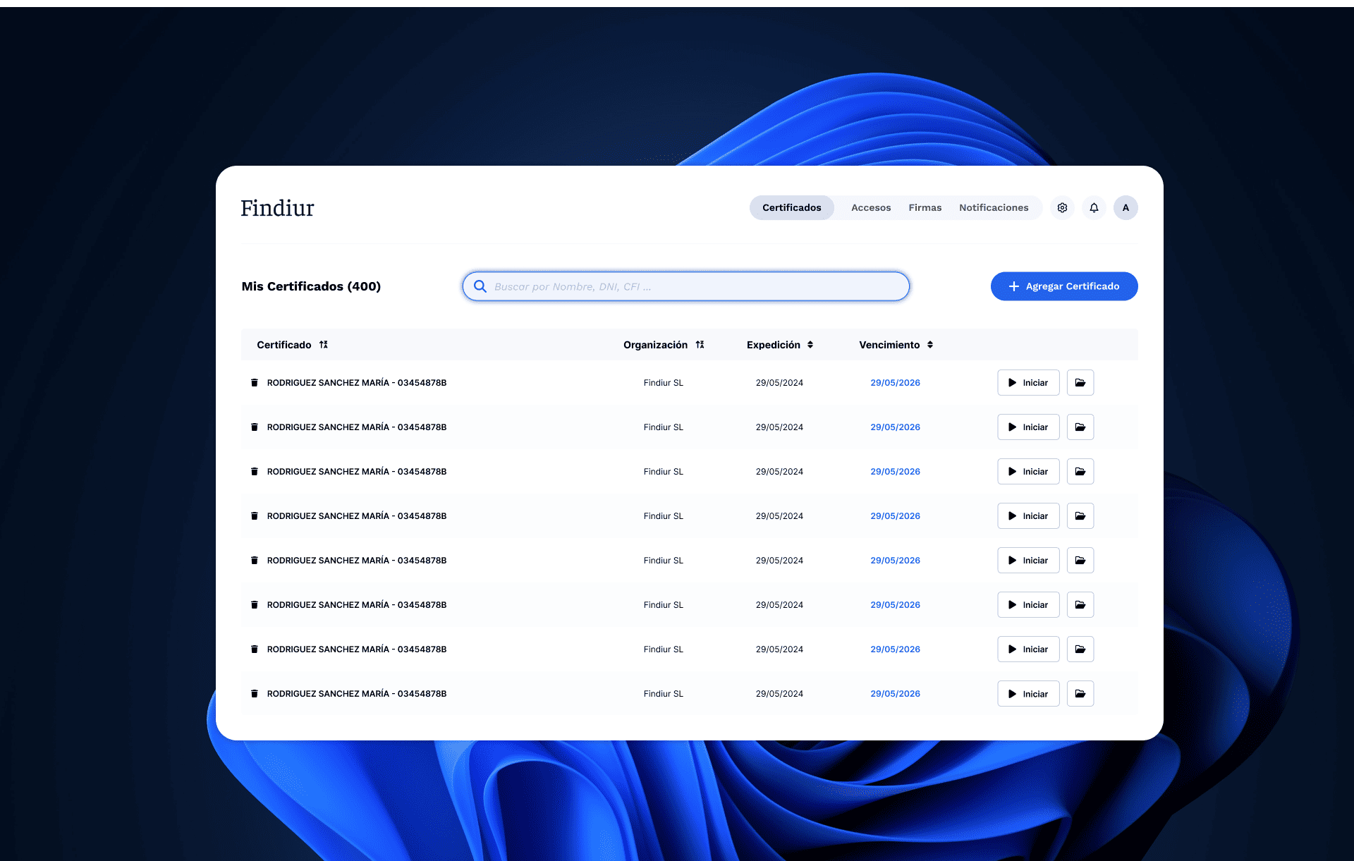 Una plataforma que te permite encontrar rápido el certificado que necesitas, avisos de caducidad, usar varios a la vez y mucho más.